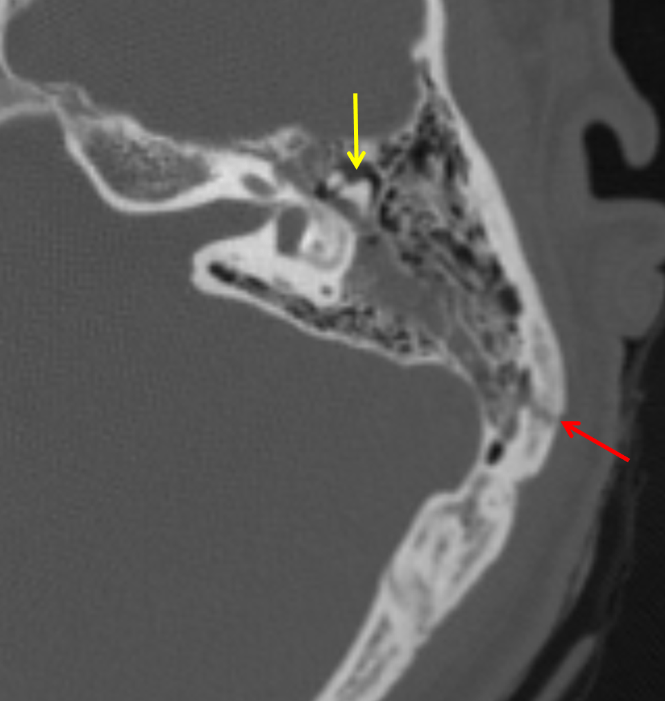 Sample ReportAcute mixed transverse/longitudinal otic capsule sparing left temporal bone fracture with fracture components extending anteriorly into the temporomandibular joint and superiorly into the lambdoid suture. Associated disruption of the left malleoincudal joint. The left TMJ is located. No sutural diastasis.