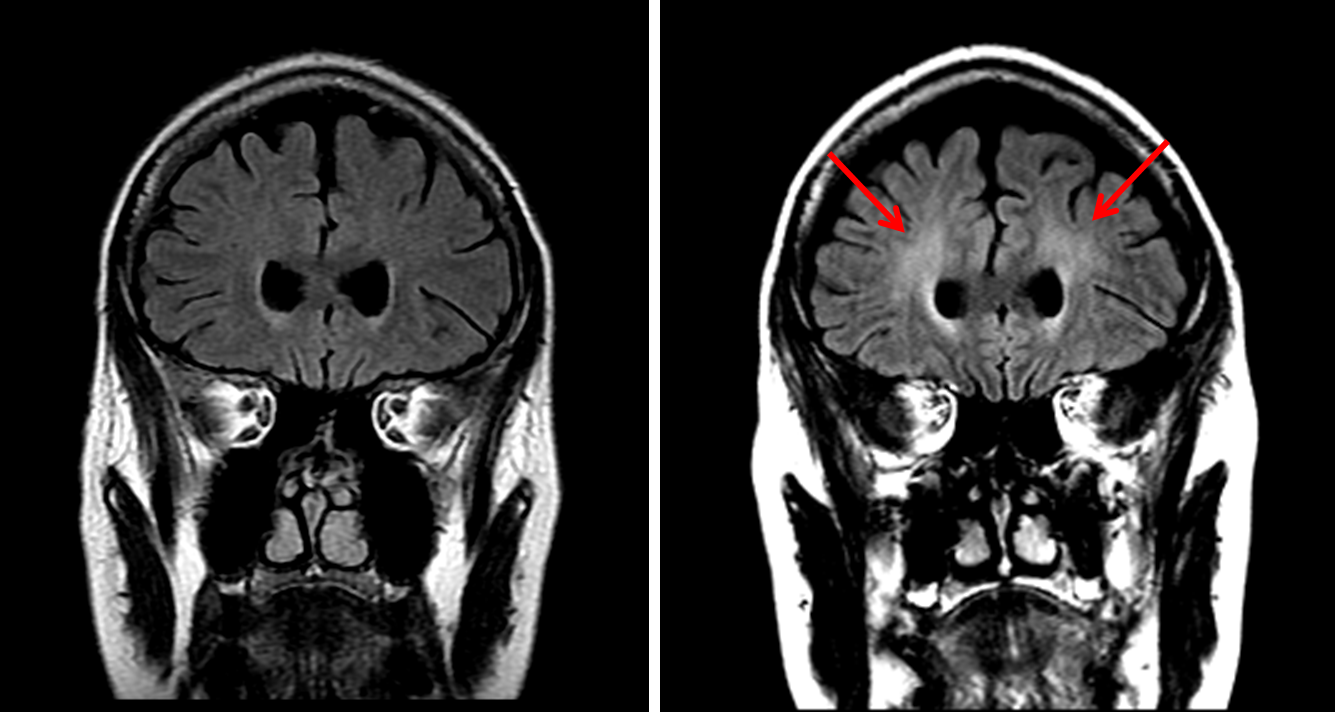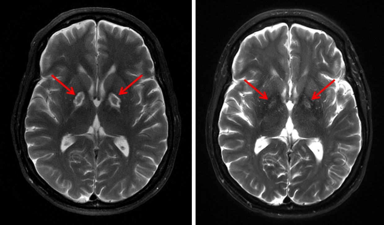 Sample ReportSymmetric abnormal signal in the bilateral globi pallidi with associated peripheral enhancement as well as patchy cortical enhancement involving the bilateral cerebellar hemispheres, for which the primary differential considerations are a toxic/metabolic process (including carbon monoxide poisoning, cyanide toxicity, and illicit drug use) and subacute infarcts.