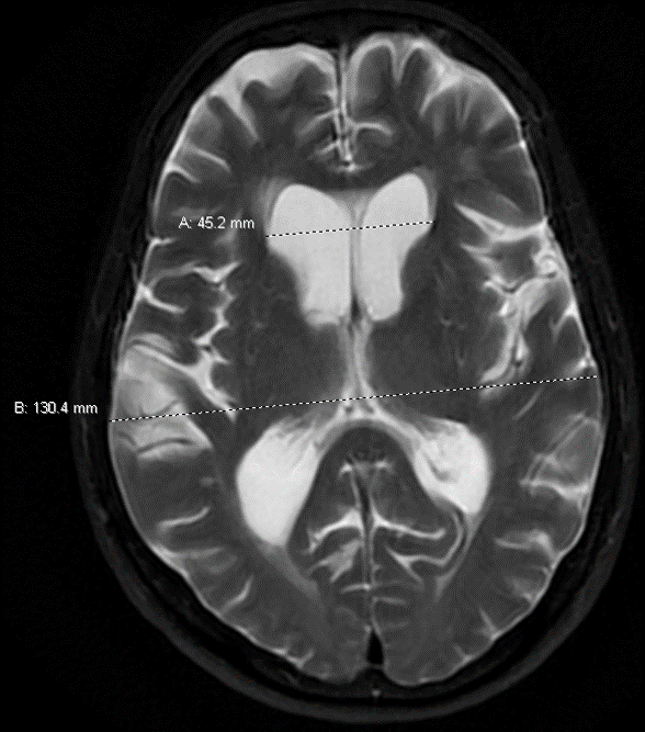 Sample ReportDiffuse ventriculomegaly, with configuration of the ventricles and extraaxial CSF spaces typical for normal pressure hydrocephalus (NPH).