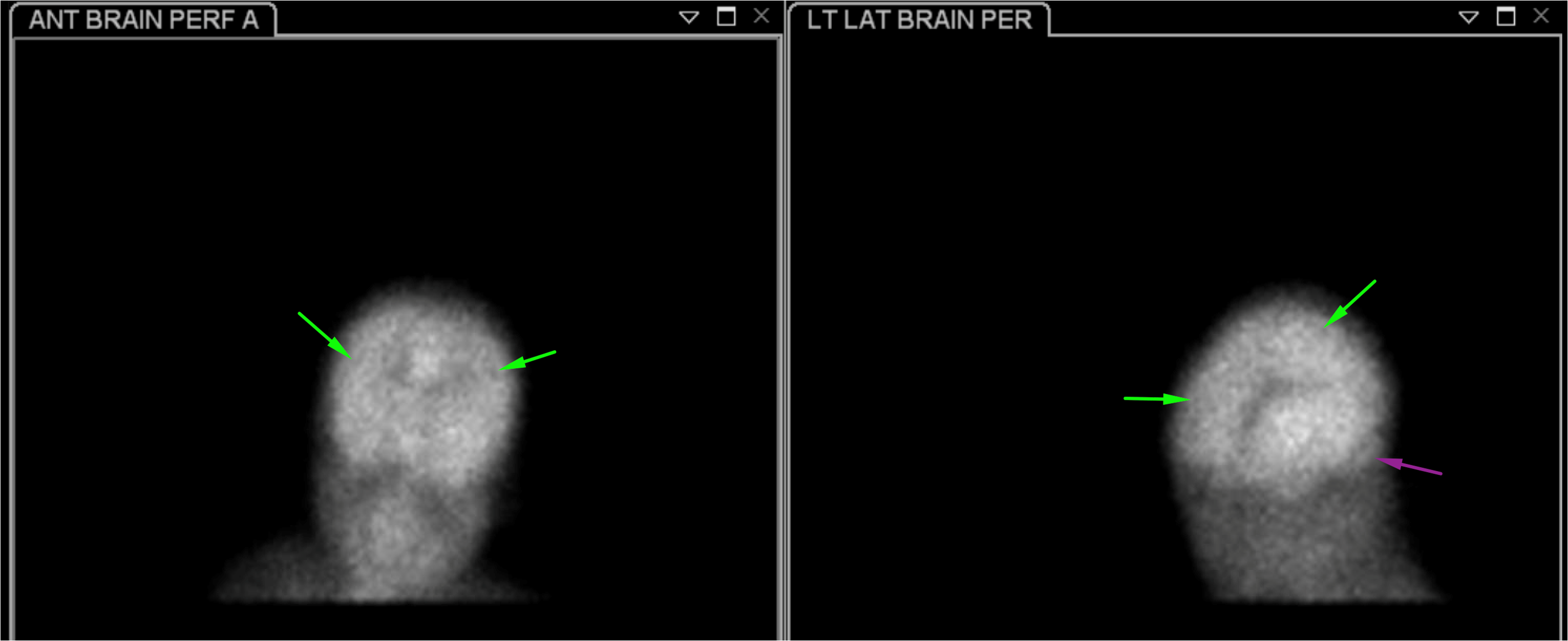 Sample ReportBrain perfusion is present in the bilateral cerebral cortex and cerebellum. These findings are not consistent with brain death.