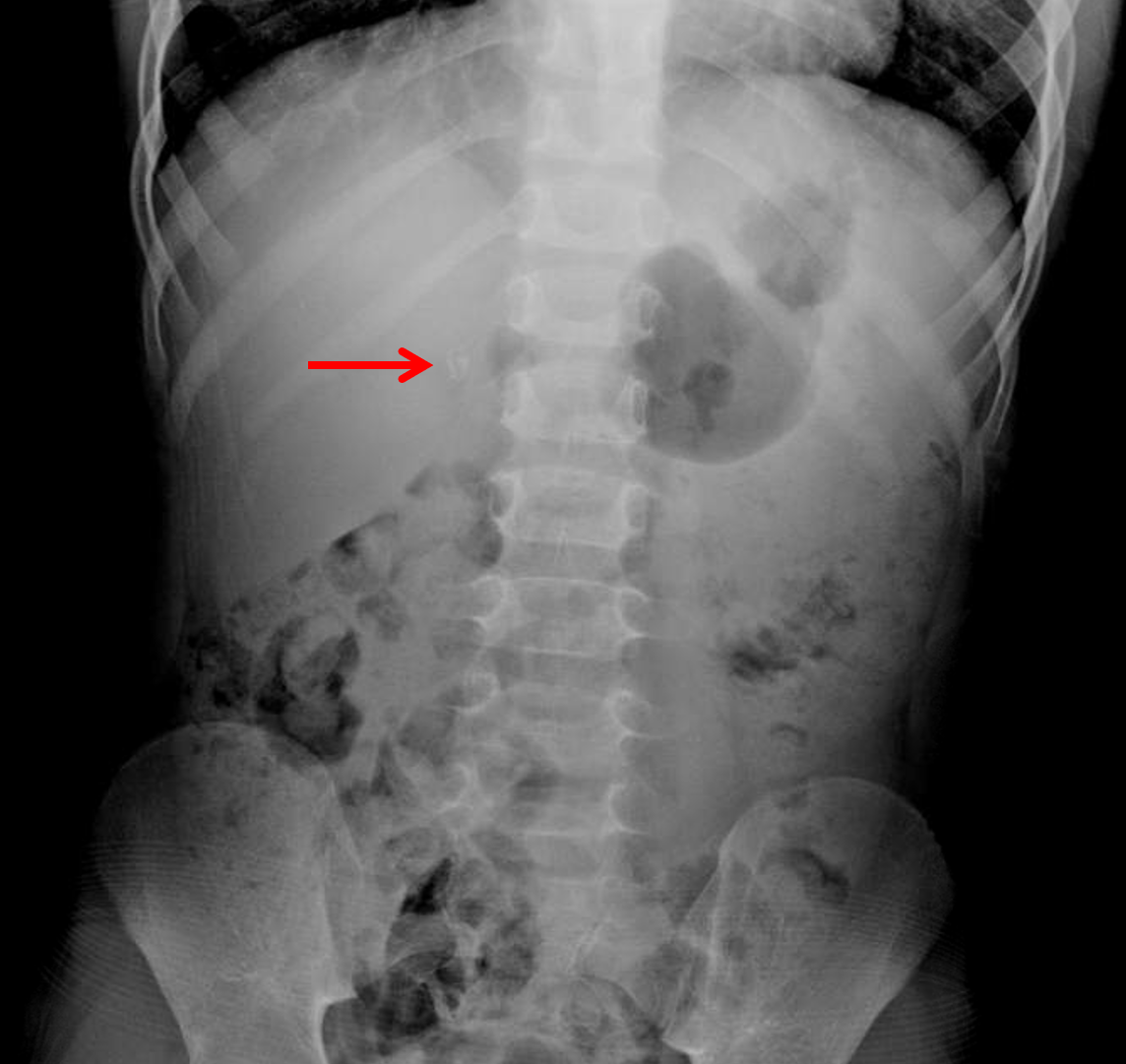 Irregular calcification overlying the right twelfth rib, which could be associated with the adrenal gland, kidney, or gallbladder. Recommend ultrasound for further evaluation.