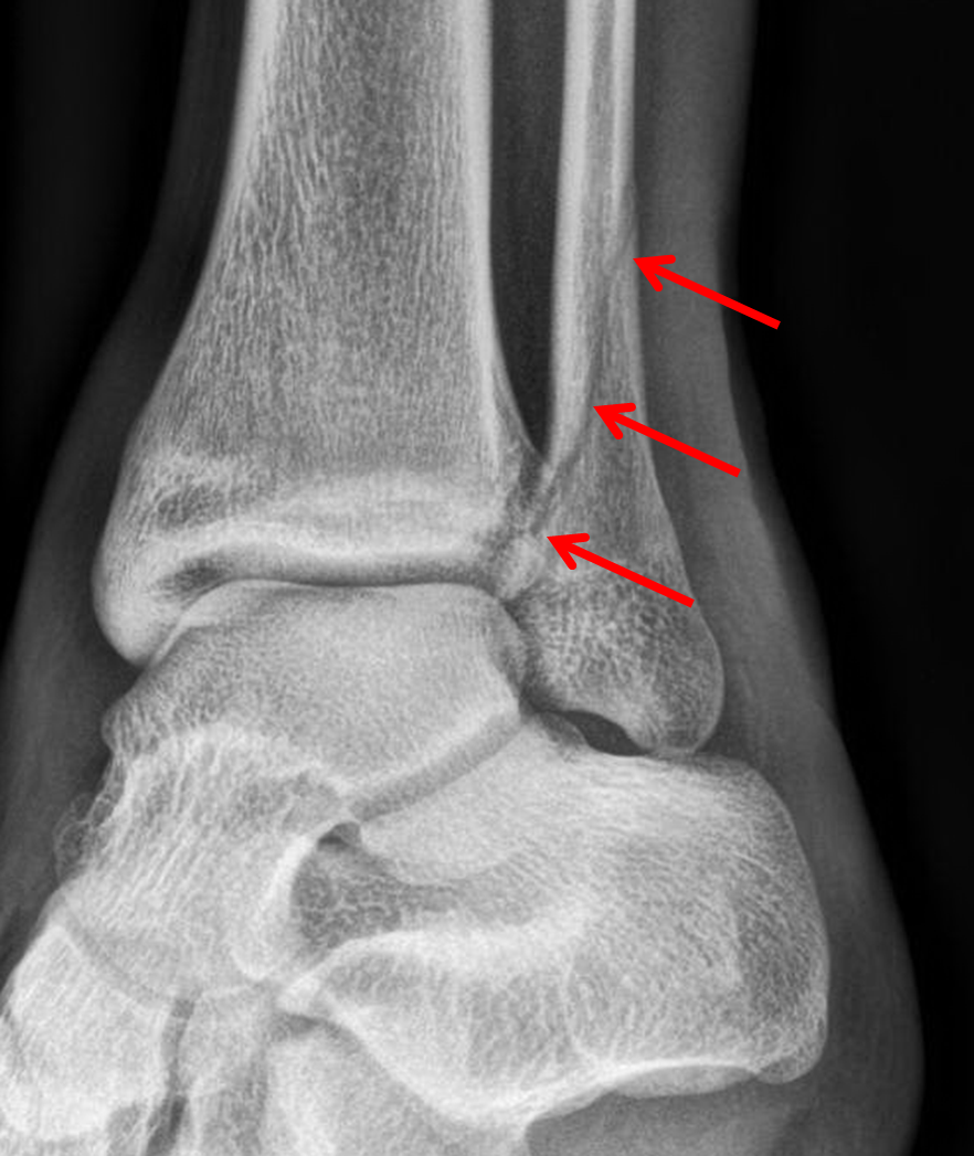 Sample ReportAcute minimally displaced oblique fracture of the distal fibula with fracture line at the level of the tibial plafond medially (Weber B).