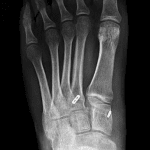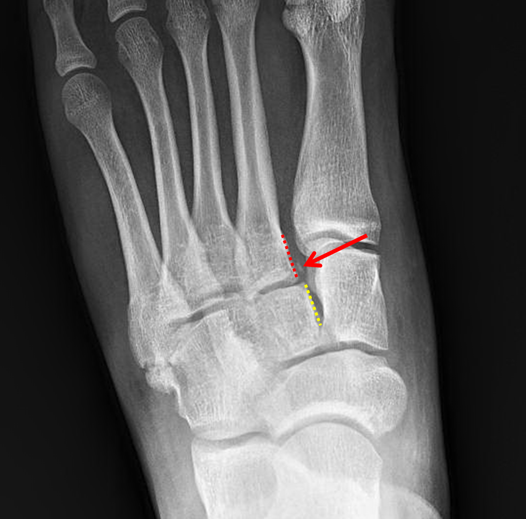 Sample ReportFindings concerning for Lisfranc fracture/subluxation with mild lateral subluxation at the second TMT joint and a small avulsion fracture fragment along the medial aspect of the base of the second metatarsal. Consider CT for further evaluation.