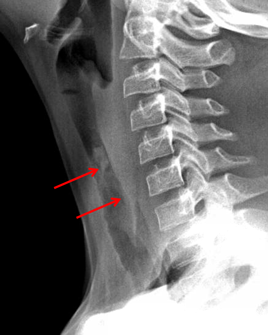 Sample ReportMild narrowing of the subglottic airway with irregular elongated soft tissue densities overlying the trachea at the C5-C7 levels. Findings are concerning for bacterial (exudative) tracheitis. Recommend ENT consultation.