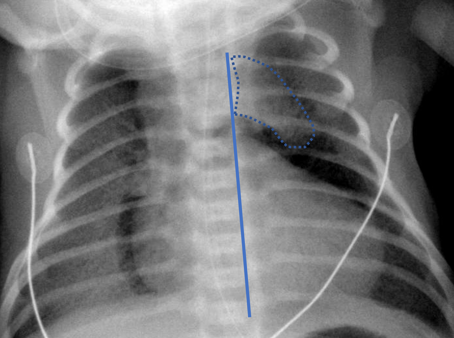 • Normal thymus overlying the right lung apex